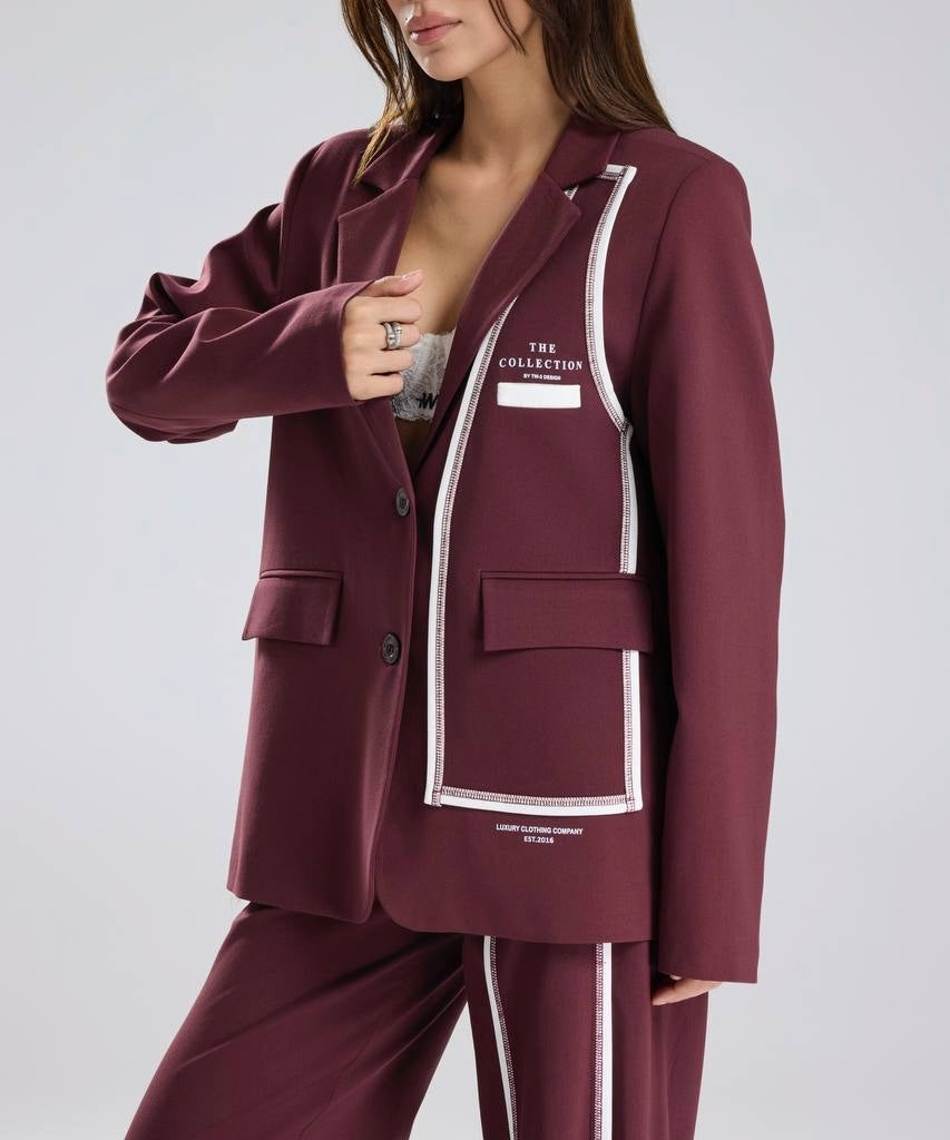 Our Collection Blazer in Cherry Liqueur is meticulously crafted with lightweight fabric, front buttons closure. Pair her with our Collection Pants to complete your look.